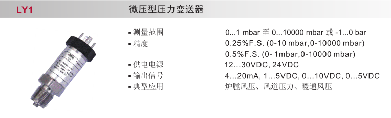 非介質隔離硅壓阻傳感器LY1(微壓型)