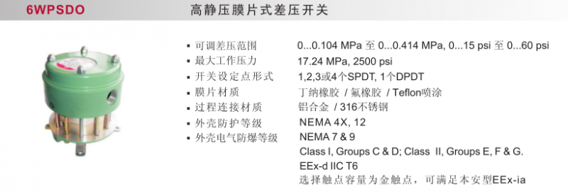 高靜壓膜片式差壓開關6WPSDO