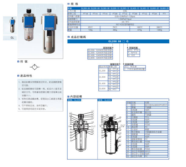 亞德客GL系列 200/300/400 給油器