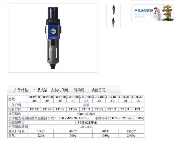 亞德客GFR系列 200/300/400 調壓過濾器