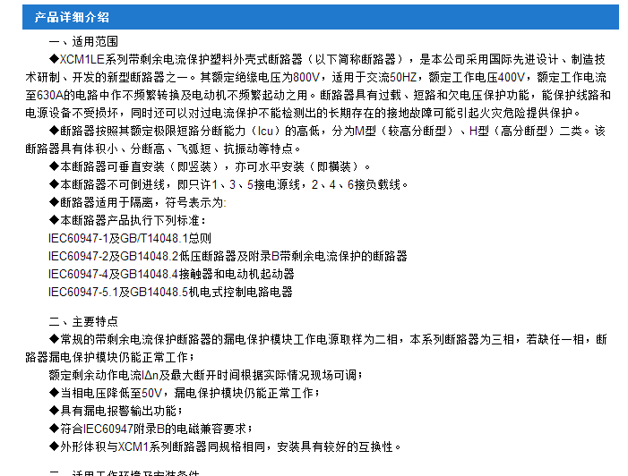 揚州新晨電器 XCM1LE系列剩余電流動作斷路器