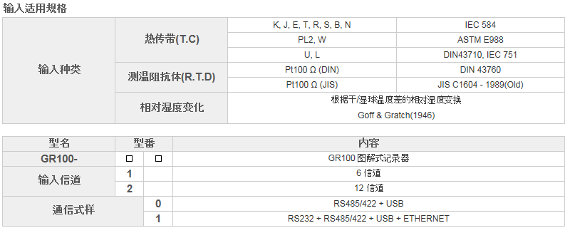 Θ規格說明 : 標題 項目 GR100 輸入 通道 6通道 12通道 量測周期 1秒