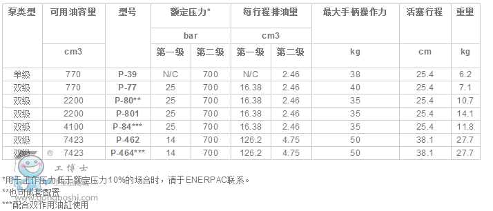 Enerpac恩派克 P-39/P7/P-80/P-801/P-84/P-462,新型鋼制手動泵