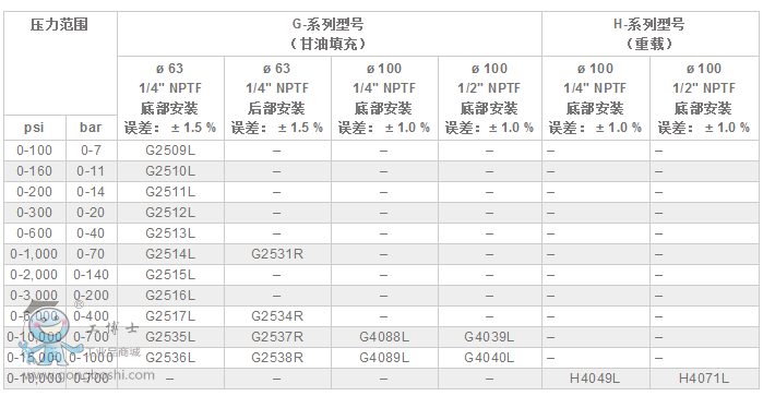 所有壓力傳感部件都被甘油密封與抗震以確保長壽命