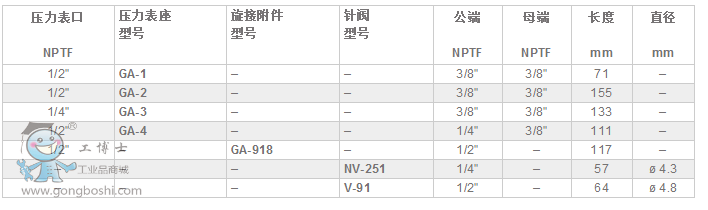 Enerpac恩派克 GA, NV, V-系列,壓力表附件