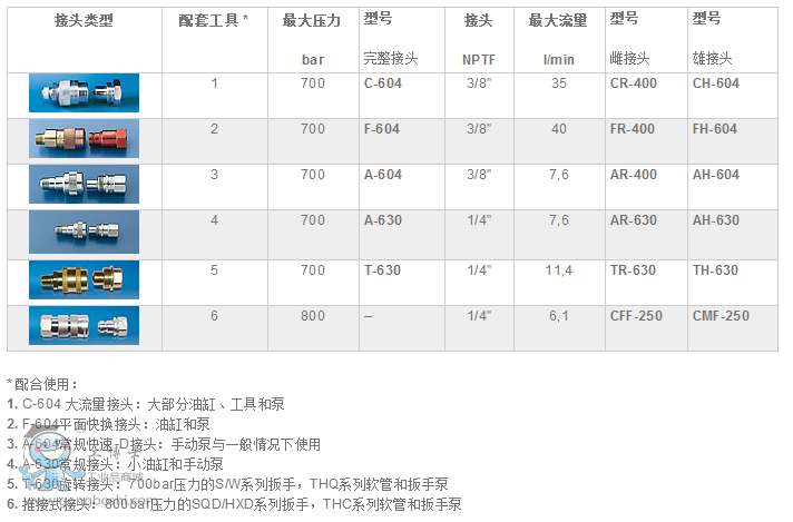 700bar和800bar ¼”快速接頭適用于扭矩扳手
