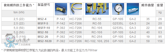 所有套件均含ENERPAC泵、軟管、液壓缸與壓力表