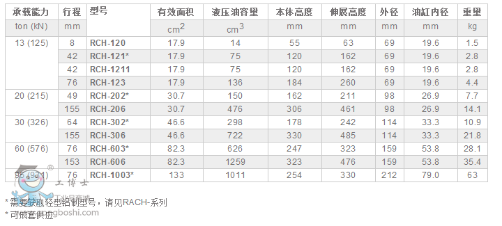 對于20噸以上的型號,使用鍍鎳的浮動中心管增加產品壽命