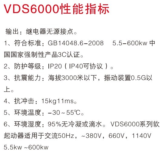 產品簡介: VDS6000系列智能型電機軟起動器是采用電力電子技術、微處理器技術及現代控制理論技術生產的具有當今國際先進水平的新型起動設備該產品能有效的限制異步電動機啟動時的起動電壓、電流。