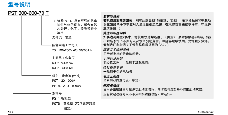 3.PST/PSTB(智能型)軟啟動器型號說明: