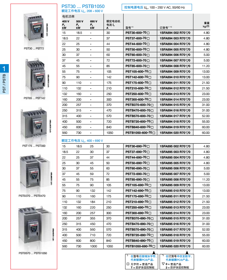 1.PST/PSTB(智能型)軟啟動器基本參數和應用: