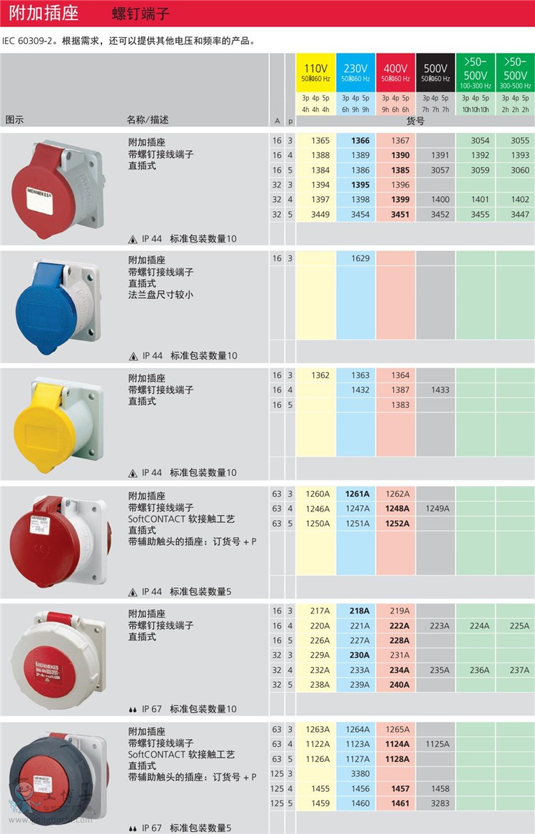 德國MENNEKES曼奈柯斯TYP-1390 4P/16A/400V/IP44暗裝直插