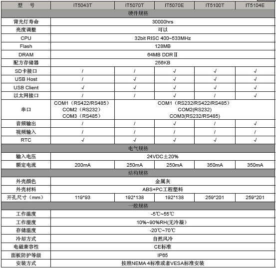 - 高性能:IT5000系列采用ARM11作為CPU,工作主頻高達533MHz,可以流暢支持動畫以及視頻播放;