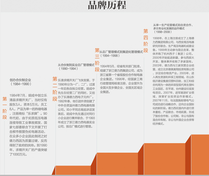 德力西源自1984年,從小到大,從弱到強,經歷了幾十年的市場考驗,贏得了億萬客戶信賴,積累了無數口碑