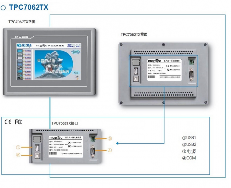 TPC7062TX是一套以先進的Cortex-A8 CPU為核心(主頻600MHZ)的高性能嵌入式一體化觸摸屏。該產品設計采用了高亮度TFT液晶顯示屏(分辨率800x480)、四線電阻式觸摸屏(分辨率4096x4096),同時還預裝了MCGS嵌入式組態軟件(運行版),具有強大的圖像顯示和數據處理功能。