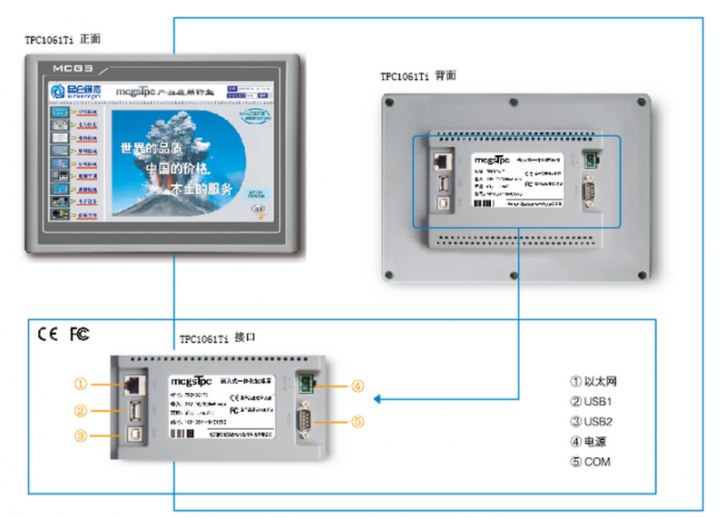 TPC1061TI是一套以先進的Cortex-A8 CPU為核心(主頻600MHZ)的高性能嵌入式一體化觸摸屏。該產品設計采用了10.2英寸高亮度TFT液晶顯示屏(分辨率1024x600)、四線電阻式觸摸屏(分辨率4096x4096),同時還預裝了MCGS嵌入式組態軟件(運行版),具有強大的圖像顯示和數據處理功能。