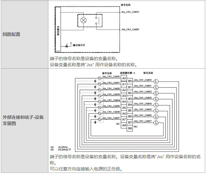 * 在外部連接和端子-設備變量圖中使用端子號A0~A8和B0~B8。它們未印在單元上。