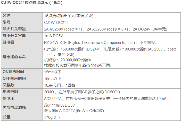 *1. 以下單元具有負載短路保護:CJ1W-OC202、CJ1W-OD204、CJ1W-OD212和CJ1W-OD232。