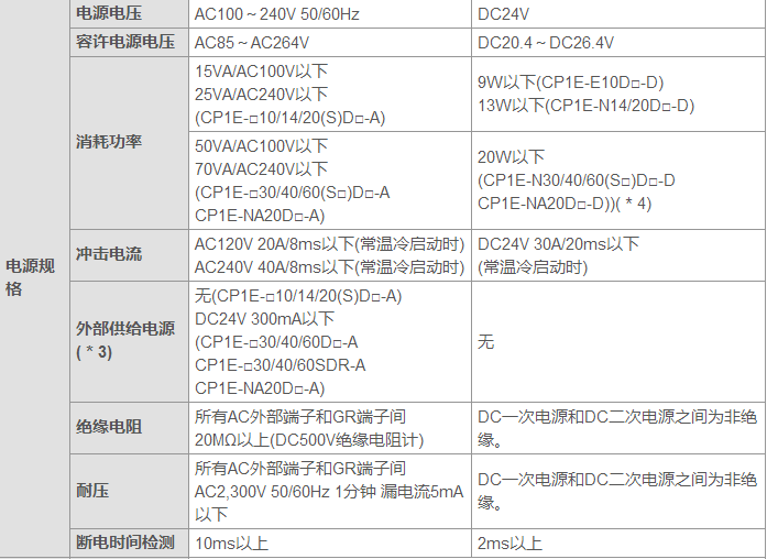 計算公式:DC電源型的消耗功率= {(5V消耗電流)×5V/70%(CP1L內部的電源效率)+(24V消耗電流)×24V}×1.1(電流變動因素)