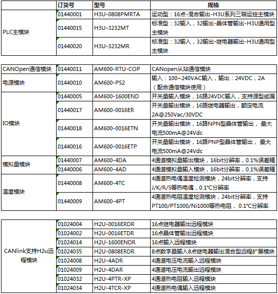 H3u高性能小型PLC分為2個(gè)類型,包括標(biāo)準(zhǔn)型以及運(yùn)動(dòng)型,其中