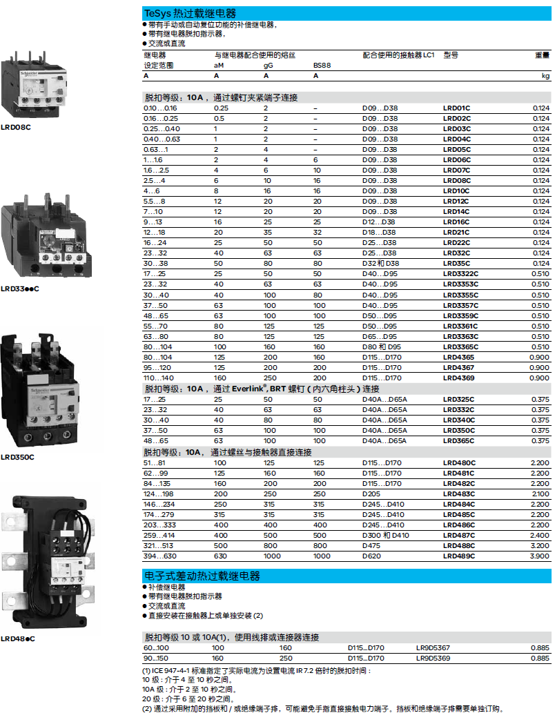 優勢:標配手動/自動復位及簡易的螺釘接線、彈簧接線、環形接線及EverLink接線多種端子選擇,高性能的LRD熱過載繼電器可以適用于150A內各種電動機規格;與TeSys D接觸器相配合可組成及其緊湊的電動機起動器