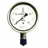 儀表由導壓系統(包括接頭、彈簧等)、齒輪傳動機構、示數裝置(指針與度盤)和外殼、泄壓后蓋、表玻璃等)所組成。外殼為氣密型結構,能在效地保護內部機件免受環境影響和污穢侵入,同時防止充液表中的硅油泄漏;其次本儀表在敏感元件和表玻璃之間有一堅硬的不銹鋼夾層,保護了在意外爆破時保護使用者免受碎片和測量介質傷害;同時表殼內壓力一旦超過一定值后,儀表背部設有的快速泄壓安全后蓋將開啟,以釋放表殼內壓力。另外對于充液表還能夠抗工作環境較劇烈和介質壓力的脈動影響。