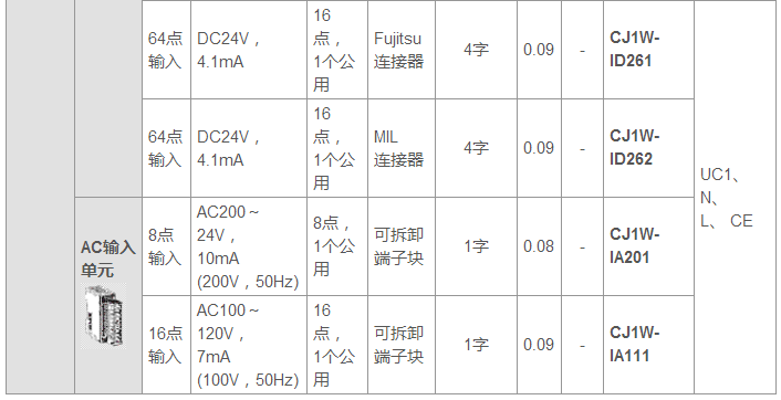 Fujitsu連接器(32點輸入、32點輸出、64點輸入、64點輸出、32點輸入/32點輸出和16點輸入/16點輸出單元)
