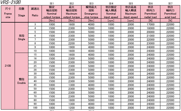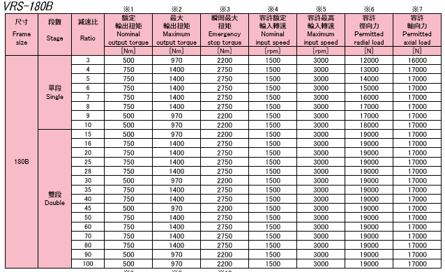 VRS系列減速比包括:3/4/5/7/10/16/20/25/28/35/40/50/70/100