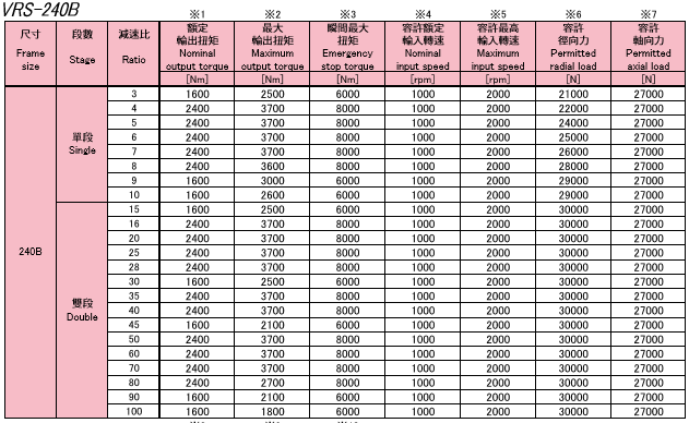 VRS系列減速比包括:3/4/5/7/10/16/20/25/28/35/40/50/70/100