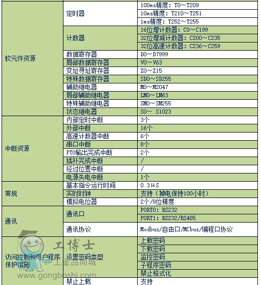 ■ 掉電保持:位元件320個,字元件180個,掉電寫EEPROM