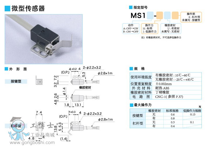 4.非常小的操作力規(guī)格也可制作 5.重復(fù)精度0.001mm