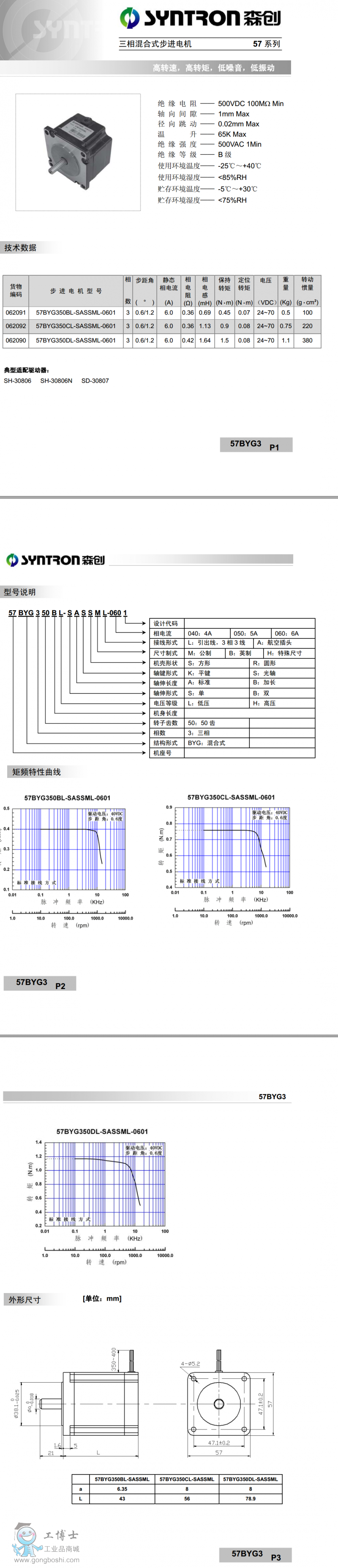 森創(chuàng)57BYG350BL 6A三相步進電機