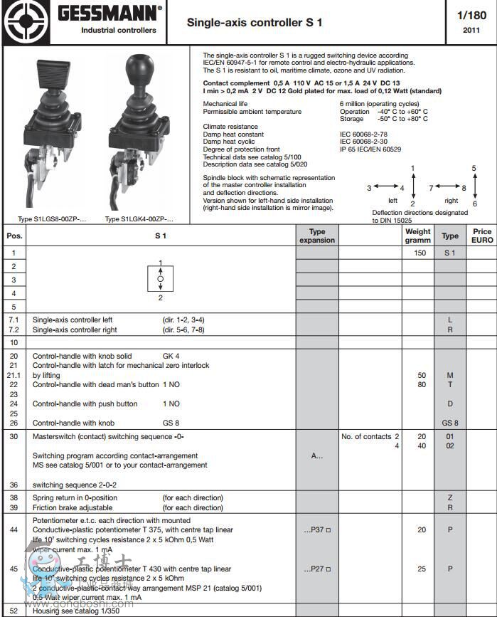 德國杰斯曼S1單軸手柄控制器 優(yōu)勢銷售 |