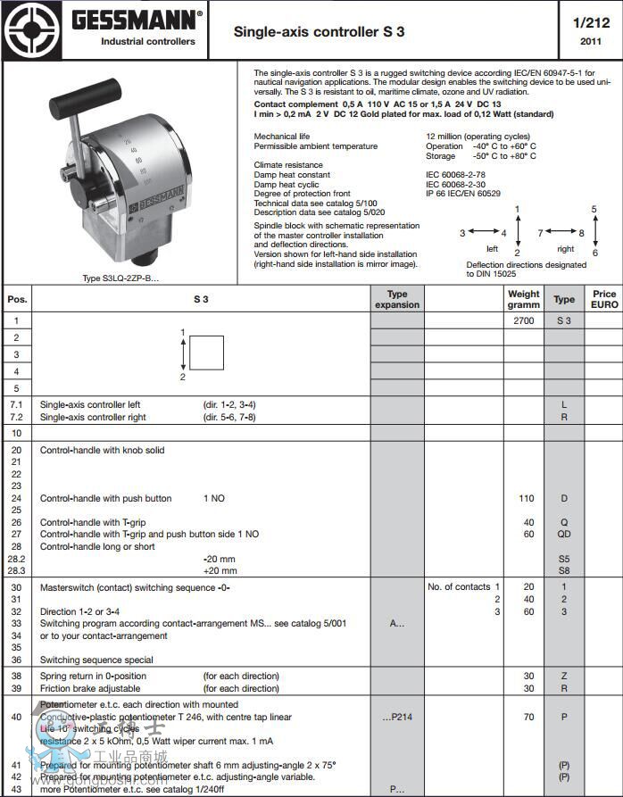 德國杰斯曼S3單軸手柄控制器 優勢銷售