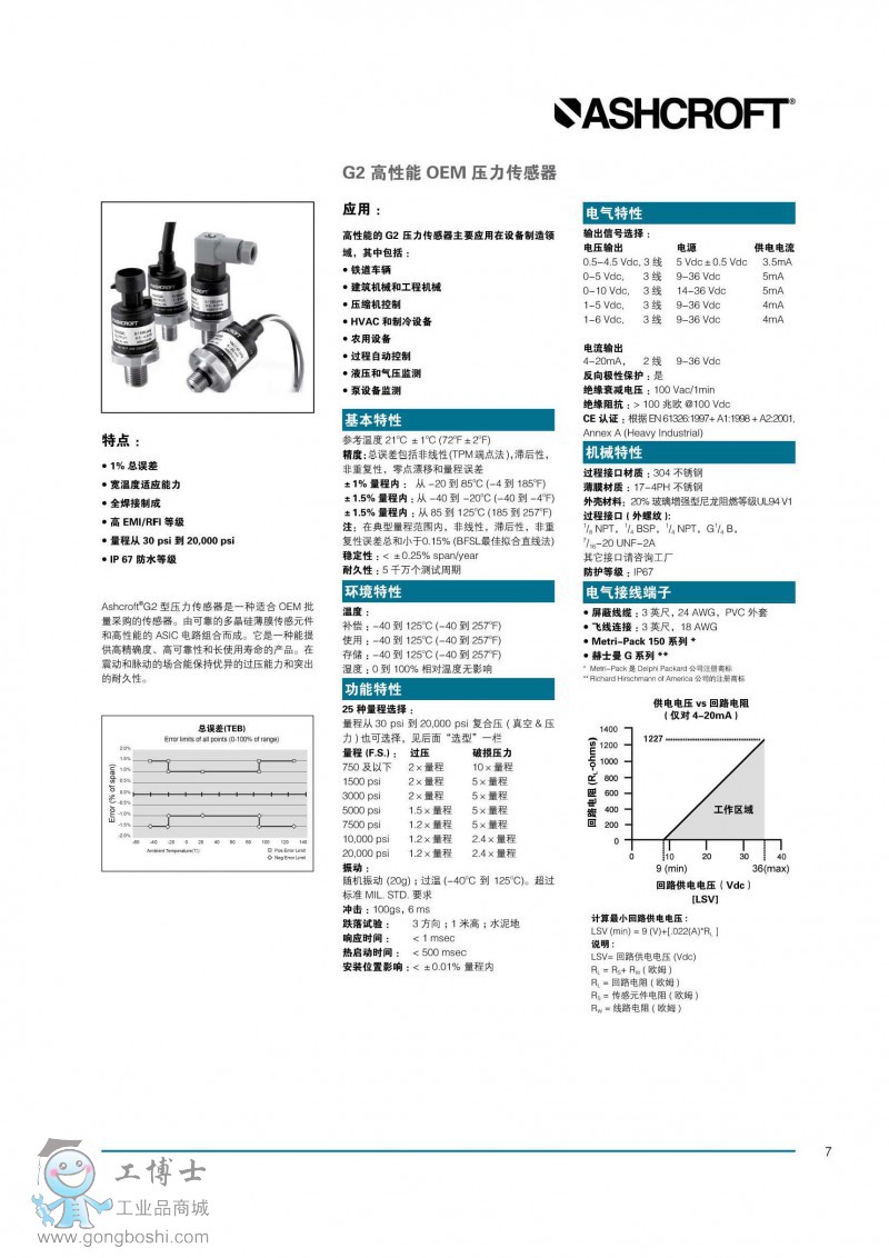 雅思科 G2 高性能 OEM 壓力傳感器
