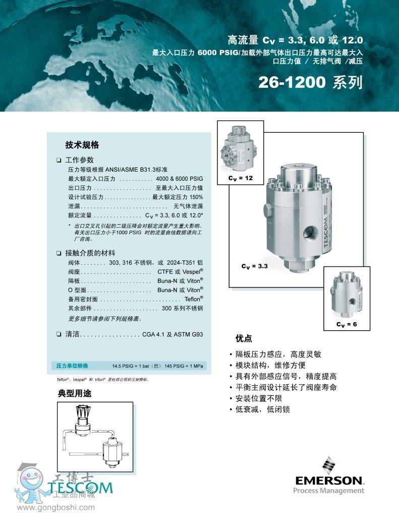 TESCOM調壓閥 裝備氣室調節閥 26-1200 系列