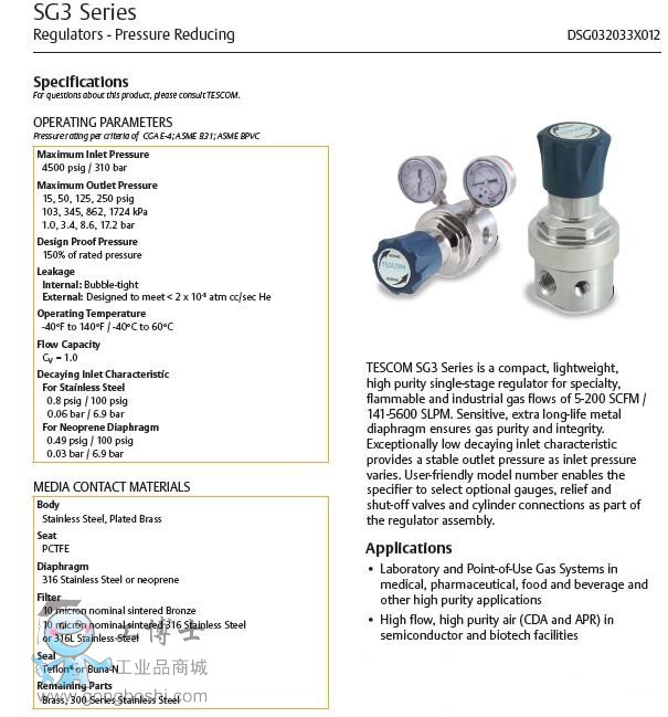 TESCOM 調壓閥 SG3 系列