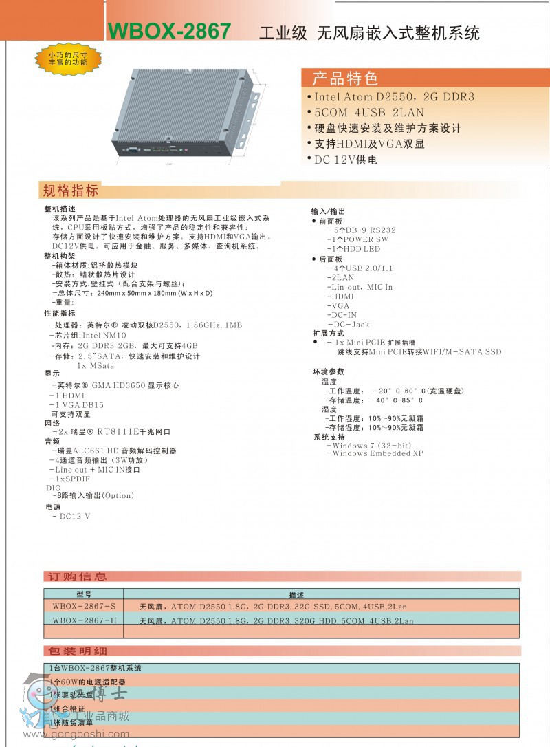 福升 WBOX-2867 嵌入式工業電腦