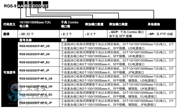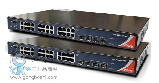 RGS-92222GCP-NP網管型全千兆以太網交換機,含22個10/100/1000Base-T(X)電口,2個千兆復合端口和2個 100/1000Base-X光口,SFP插槽。支持多種網絡冗余協議,O-Ring (自愈時間<30ms @ 250臺交換機)、Open-Ring、OChain、MRP和MSTP (RSTP/STP),當網絡故障時可以迅速地恢復,保證重要應用的不間斷通訊。此外,支持-40 ~75℃寬溫, 保證設備在惡劣環境下穩定運行。除基于WEB、Telnet、Console(CLI)行管理和配置外,ORing還提供專業的Open-Vision網管 軟件,對交換機進行集中管理和配置。因此,RGS-92222GCP-NP系列交換機是構建高效以太網的*佳選擇。