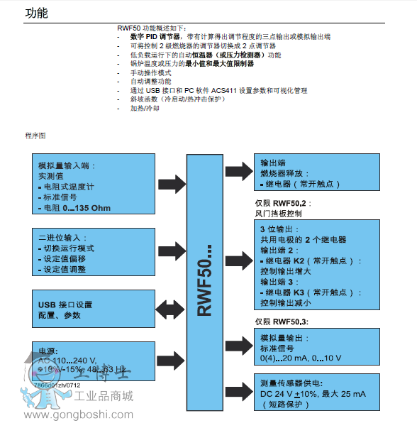 視規格而定,將 RWF50 用作無調節程度反饋信息的緊湊型 3 點步進控制器,或者用作