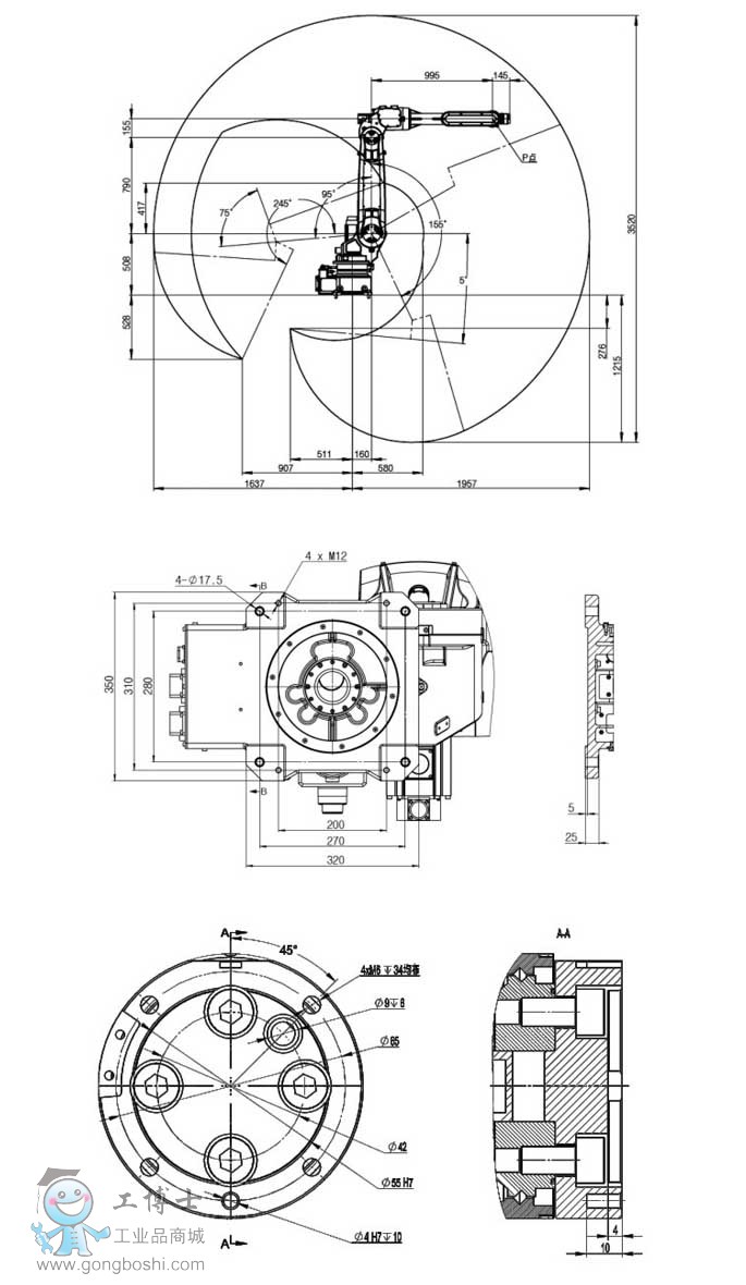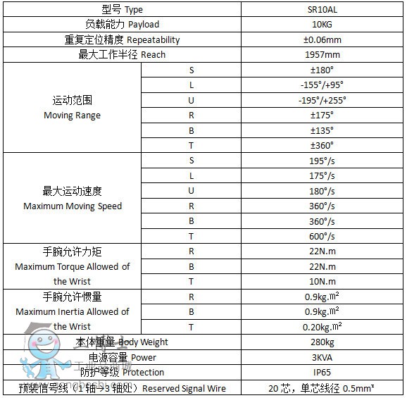 新松全新SR10A系列機型支持中空式和外置式兩種類型加長型手臂設計,*大負載能力達10kg,作用半徑長達約1957mm。機械結構緊湊,精致。工作空間范圍更廣。同時還具備極高的精確度,性能穩定可靠。防護等級IP65,可以毫無問題地應對惡劣的外部生產條件。靈巧腕部及超強扭矩的**融合,縮短了運動的作業時間,實現多樣性和靈活性的*大化。此類機器人在焊接領域獨占鰲頭,可以輕松到達2m半徑內結構件腔體內部完成焊接,滿足您理想的焊接效果。同時在打磨、搬運、裝配等低負載、高精度、高速度應用領域也毫不遜色。