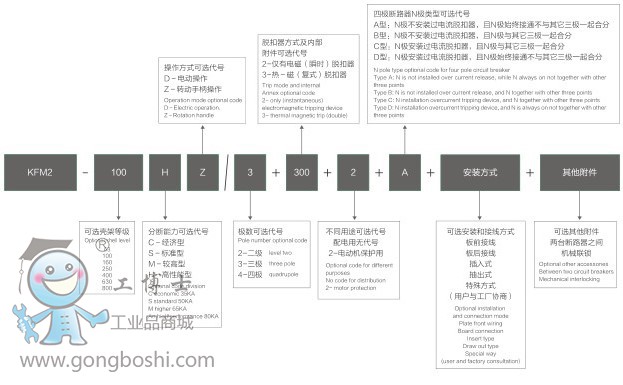 安裝類別:斷路器主電路的安裝類別為Ⅲ,不接至主電路的輔助電路和控制電路安裝類別為Ⅱ。