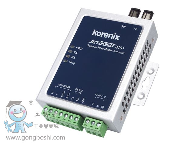 JetCon 2401 工業(yè)串口轉光纖媒介轉換器