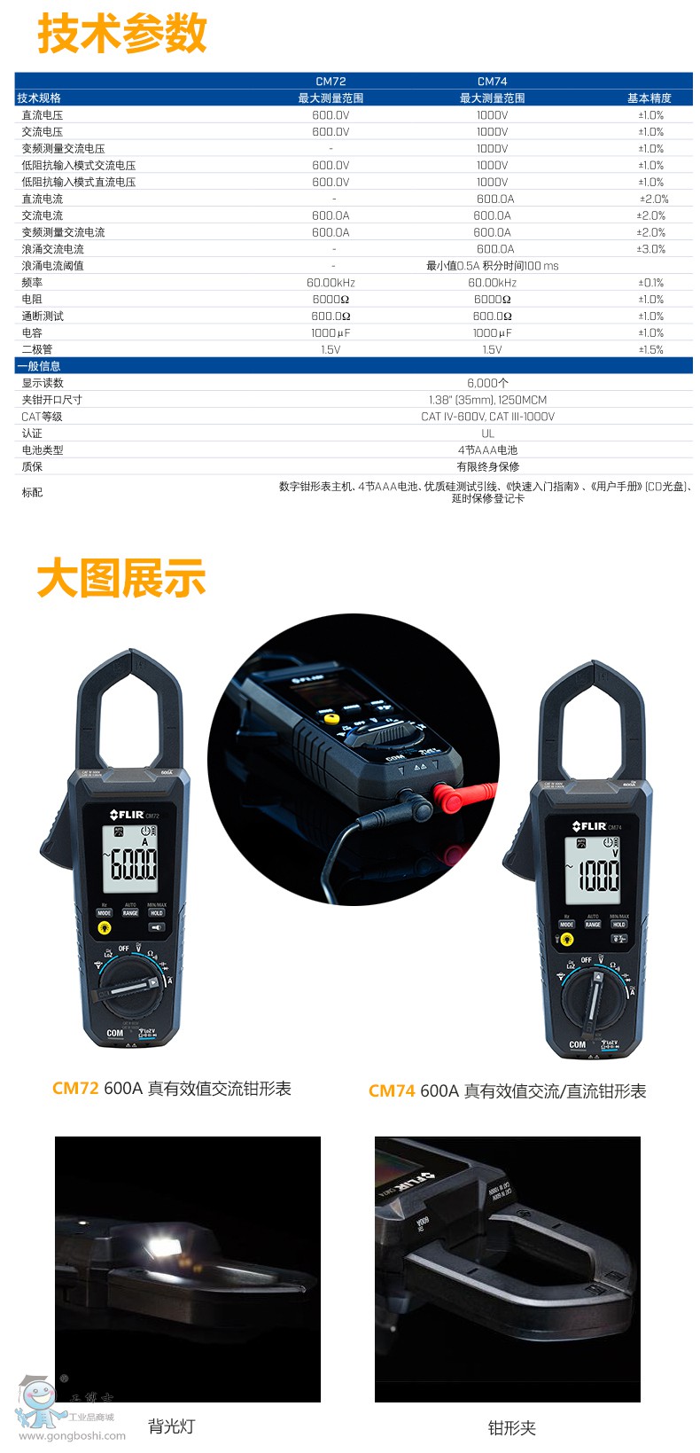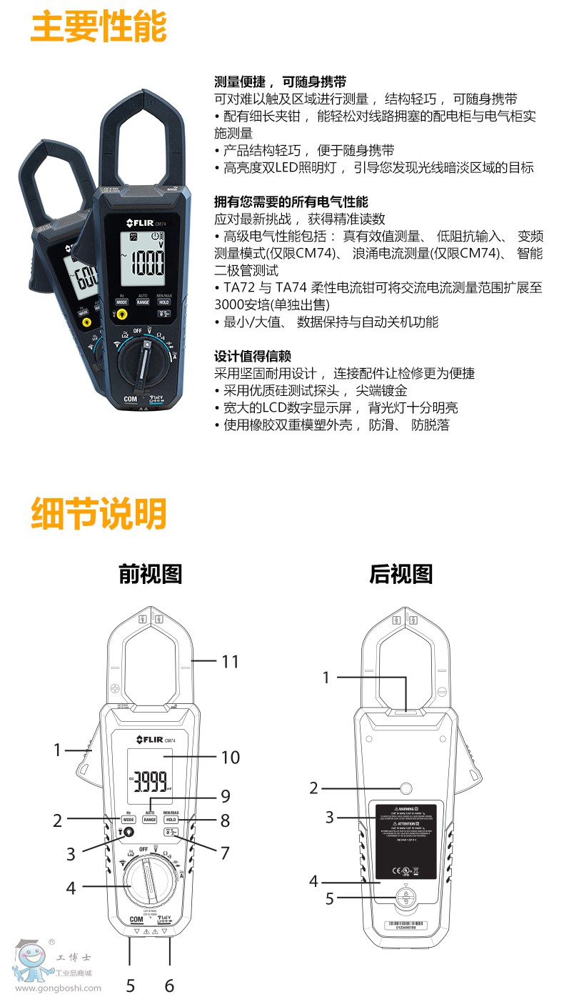 FLIR 菲力爾 數字鉗形表 CM72數字鉗形表 AC