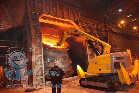 Brokk800是Brokk機器人家族中*大的機器人,自重11290kg,3號臂可以360度連續旋轉,工作范圍達9.6m,可以勝任一些任務艱難、工況惡劣的檢修作業或者拆除作業。機器人配置的專用液壓錘具有熱保護功能,以保證液壓系統能夠正常工作,在大型鋼包、轉爐的清口作業時表現卓越,同樣的,操作者可以選擇安全的位置舒適的操作機器人。