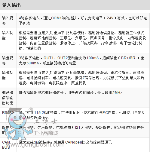 • 驅動器支持Canopen總線控制