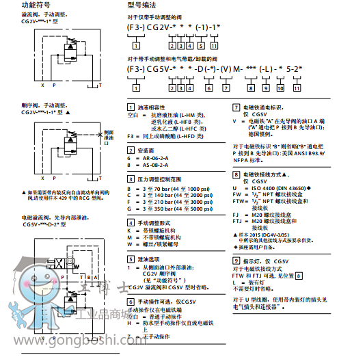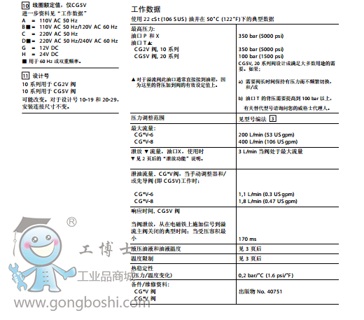 威格士vickers壓力控制閥板式安裝CG2V-6/8, 10 系列;CG5V-6/8, 20 系列 |