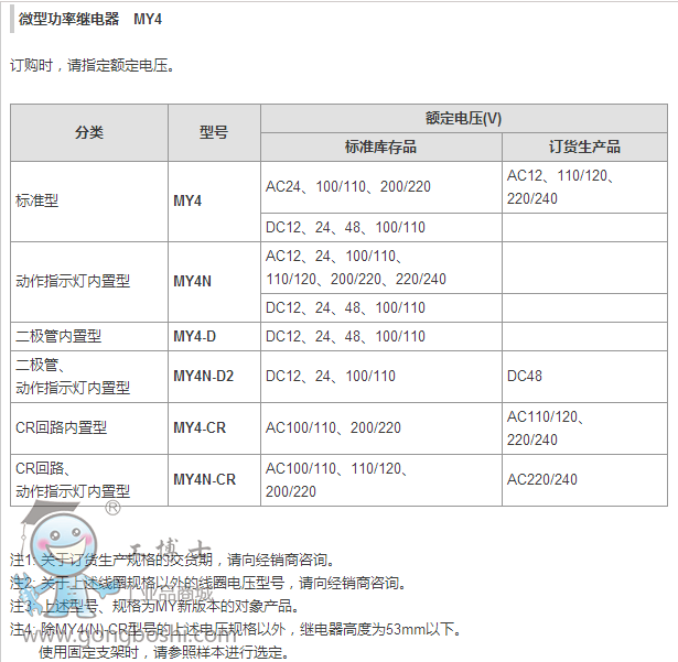 | 雙 | MY4ZN-D2* | MY4Z-D* | MY4ZIN-D2(S)* | |||