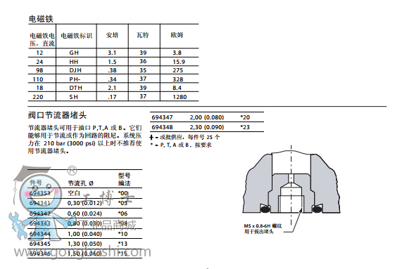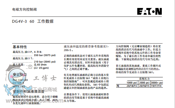 威格士vickers方向控制閥:電磁方向控制閥DG4V-3 60 |