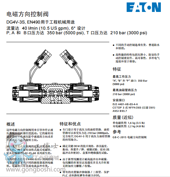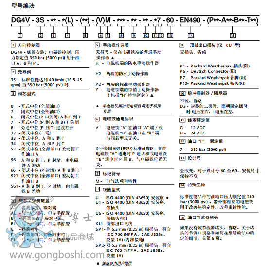 威格士vickers方向控制閥:電磁方向控制閥DG4V-3S, EN490